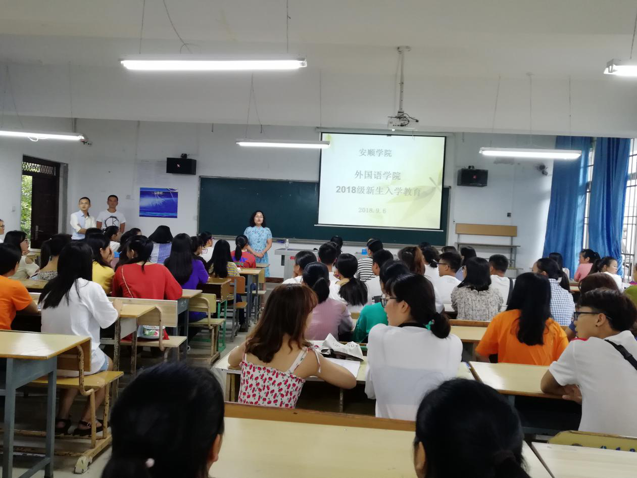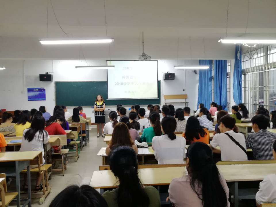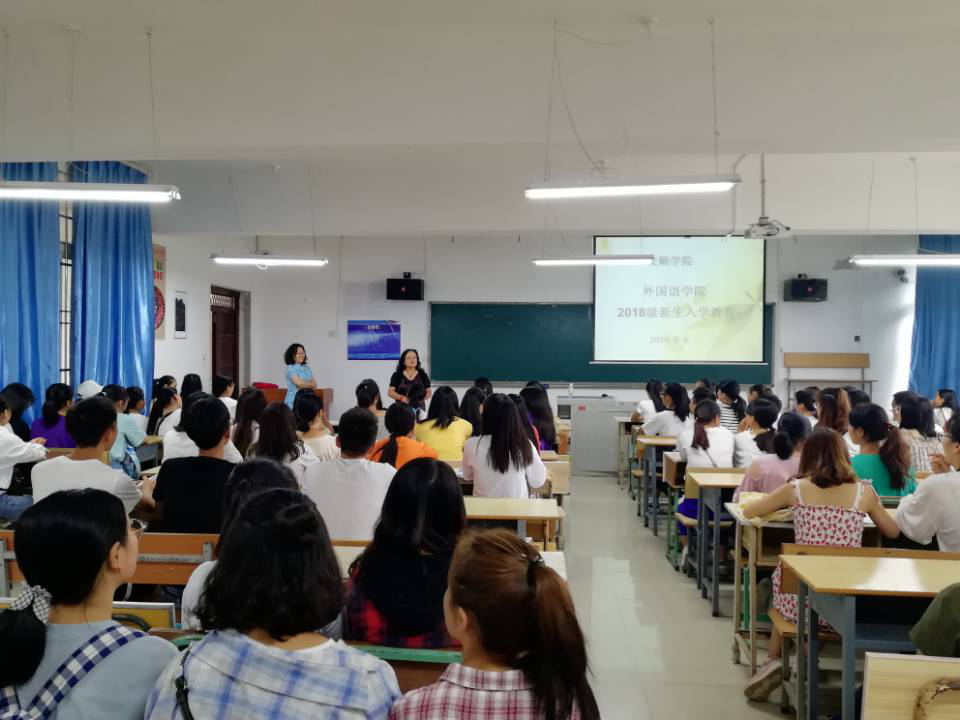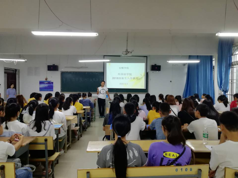 2018年9月6日,新葡萄88805官网于新教学楼0B12和0B13教室召开了2018级新生入学动员大会。参加本次动员大会的有新葡萄88805官网院长蒋燕、副院长曾沉、副院长刘碧芬、团总支书记王旭、学生科副科长黄健、辅导员陆玉梅、新生班班主任姜伊铃子、陈丽及外语学院2018级全体新生。