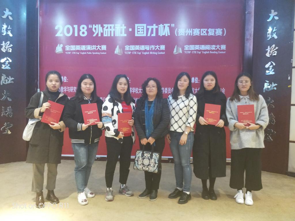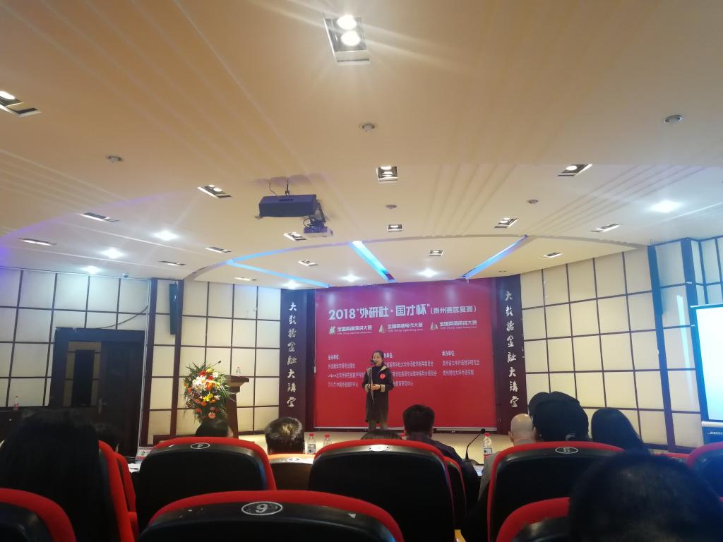10月27日,2018年全国“外研社*国才杯”英语演讲、写作、阅读大赛贵州赛区复赛在贵州财经大学举行。新葡萄88805官网院长蒋燕教授应邀担任大赛写作、阅读的评委及颁奖嘉宾。新葡萄88805官网通过举办全校的选拔赛初赛、决赛,选派5名表现突出的学生分别参加了演讲、写作、阅读3项贵州赛区复赛,荣获2个二等奖、3个三等奖。