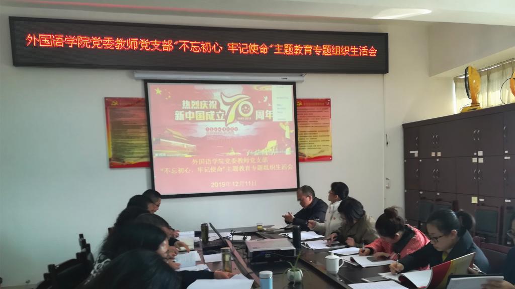 12月11日下午,按照学校党委“不忘初心、牢记使命”主题教育办公室和新葡萄88805官网院党委的部署要求,新葡萄88805官网教师党支部在新葡萄88805官网党员活动室召开“不忘初心、牢记使命”主题教育专题组织生活会。新葡萄88805官网党委班子全体成员以普通党员身份参加此次专题组织会议。会议由教师党支部书记刘碧芬主持。