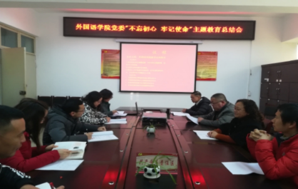 为认真贯彻落实中央、省委、市委及学校党委“不忘初心、牢记使命”主题教育总结大会精神,全面总结新葡萄88805官网主题教育的经验成效,进一步巩固深化主题教育成果,加强“不忘初心、牢记使命”制度建设,持续推动整改整治工作保持常态化、形成长效机制。 2020年1月11日下午,新葡萄88805官网党委召开“不忘初心、牢记使命” 主题教育总结会。外国学院党委班子成员,新葡萄88805官网“不忘初心、牢记使命”主题教育指导小组全体成员参加。会议由新葡萄88805官网党委副书记刘碧芬主持。