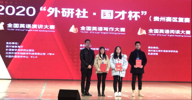 11月7日,2020“外研社·国才杯”全国英语演讲、写作和阅读大赛贵州省复赛在凯里学院举行。新葡萄88805官网2017级周菊同学荣获写作比赛特等奖、阅读比赛二等奖;2017级傅欢欢同学荣获写作比赛一等奖;2018级何青霞同学荣获写作比赛三等奖;2018级陈衍伊同学荣获演讲比赛三等奖。周菊同学将于12月中旬代表贵州选手赴北京参加全国英语写作比赛总决赛。